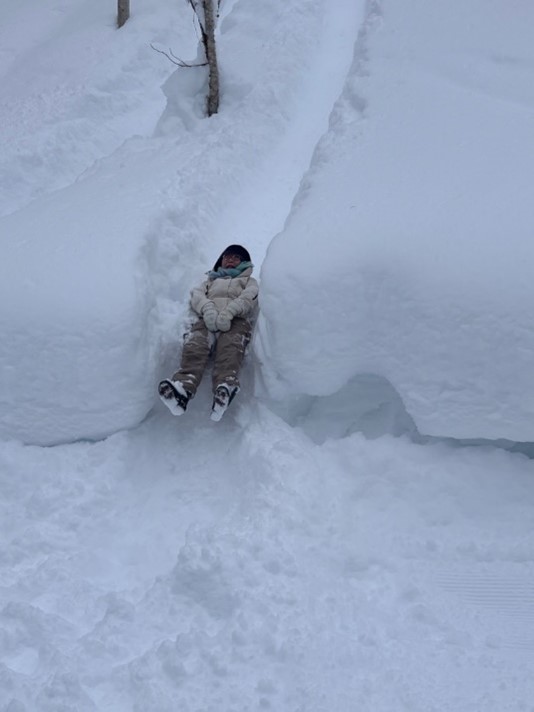 予想以上のスピードに、大人も子供も「スリル満点!」と大はしゃぎ 。顔に雪がつくのもお構いなしで、真っ白な世界に歓声が響き渡りました 。